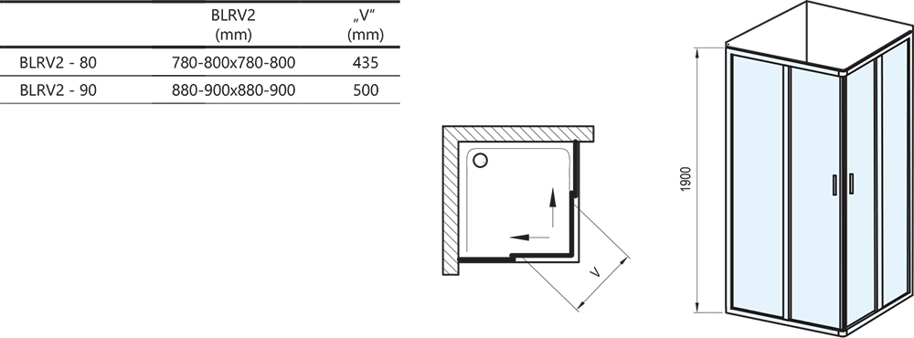 Výrobek se montuje do obloženého rohu koupelny na vaničky Ravak Angela, Perseus Pro, Perseus Pro Flat, Perseus Pro Chrome nebo přímo na podlahu se zabudovaným odtokovým žlabem či podlahovou vpustí. Použitím nastavovacího profilu BLNPS lze výrobek rozšířit o 20 mm.