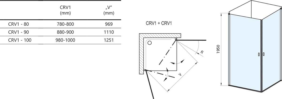 Polovica rohového sprchového kútu Chrome vo vyhotovení biela matná a s výplňou z číreho skla s ochrannou vrstvou Ravak AntiCalc®. Pre druhú polovicu rohového sprchového kútu sa výrobok kombinuje s CRV1, CRV2 alebo CPS. Pántový systém otvárania.